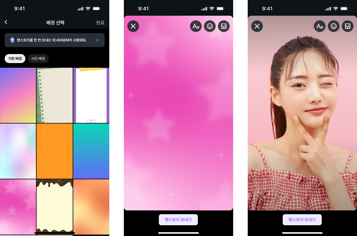 - [팬스토리 보내기] 버튼을 누르면 완료!
