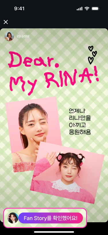 - 아티스트가 Fan Story를 확인하면 '아티스트가 열람했습니다' 메시지가 전달돼요.